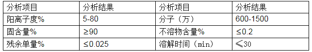 陽離子聚丙烯酰胺(CPAM)是由陽離子單體和丙烯酰胺單體共聚而成的一種溶于水的線型高分子化合物。易溶于水,不溶于酮、酯、烴等有機(jī)溶劑。陽離子PAM在酸性或堿性介質(zhì)中均呈現(xiàn)陽電性,這樣能有效的對污水中懸浮顆粒帶陰電荷的污水進(jìn)行絮凝沉淀,外觀為白色粉粒,具有水溶解性好、溶解速度快、分子量分布窄、實(shí)際用量小、pH值范圍廣等一系列優(yōu)點(diǎn)。陽離子聚丙烯酰胺廣泛應(yīng)用于城市污水處理、造紙工業(yè)、食品加工業(yè)、石化工業(yè)、冶金工業(yè)、選礦工業(yè)、染色工業(yè)和制糖工業(yè)及各種工業(yè)的廢水處理。